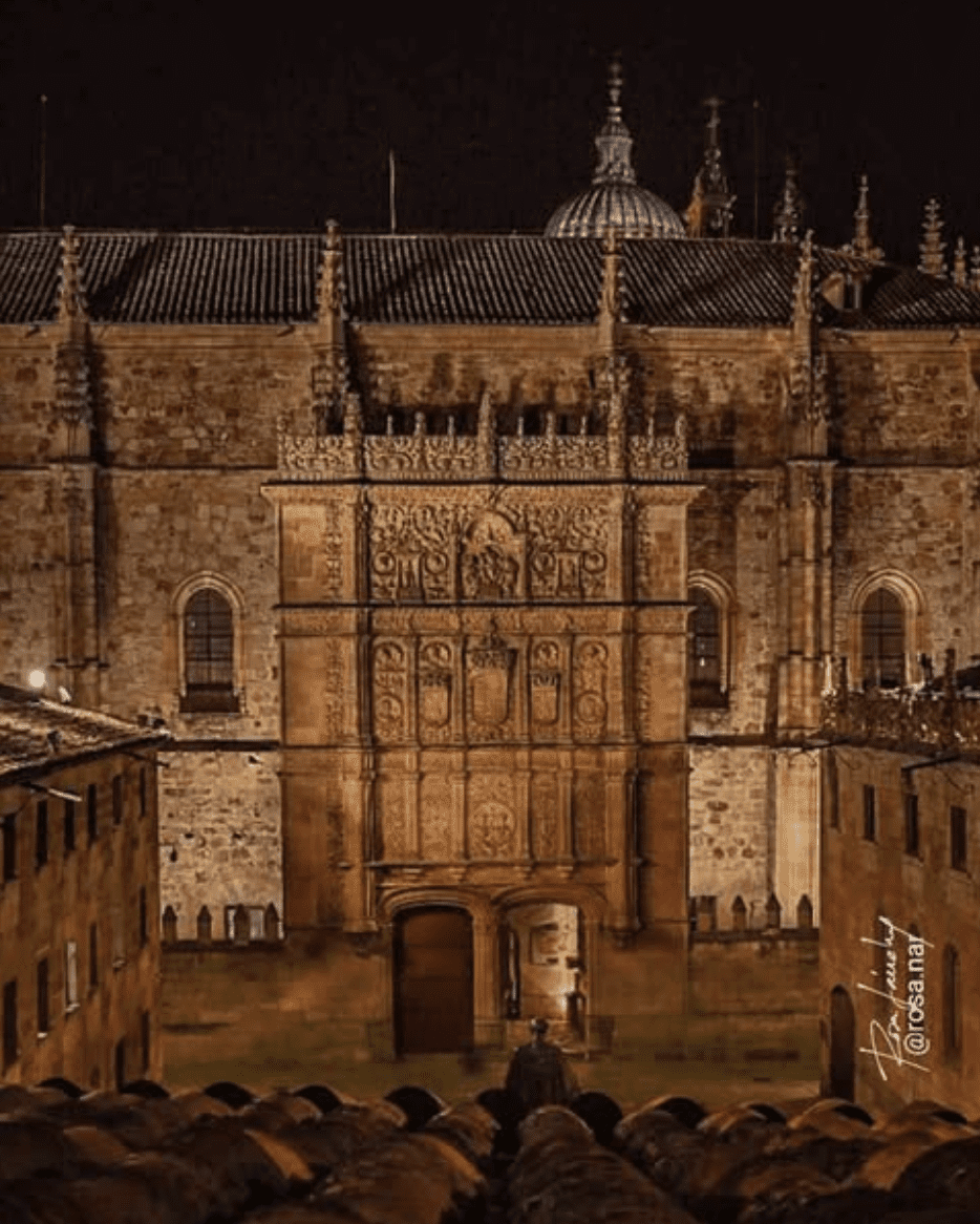 La fotografía de hoy es de Rosa Sánchez. Imagen nocturna del Patio de Escuelas Mayores de la Universidad de Salamanca.