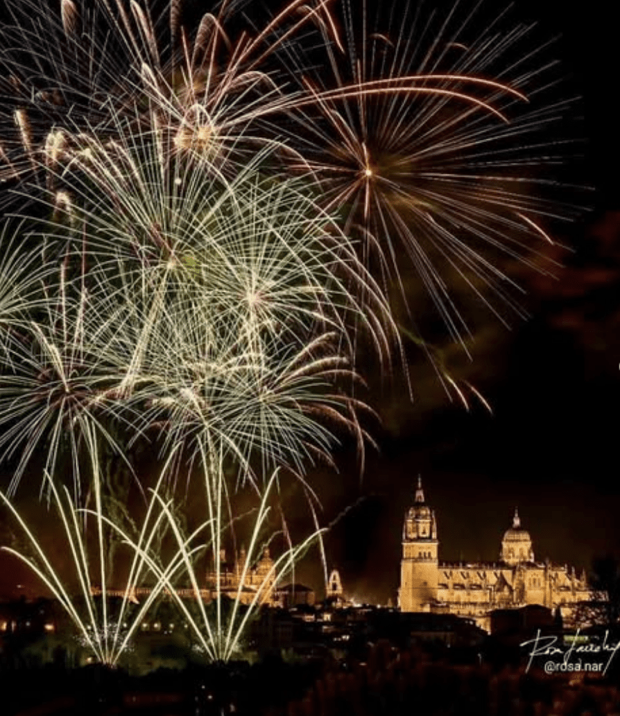 La fotografía de hoy, festividad de la Virgen de la Vega, patrona de Salamanca; de la Natividad de María, y de la Virgen de la Peña de Francia, es de Rosa Sánchez. Imagen de anoche con los fuegos artificiales sobre la ciudad.