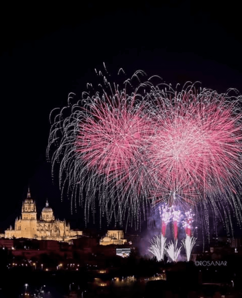 La fotografía de hoy es de Rosa Sánchez. Imagen de los fuegos artificiales sobre la ciudad de Salamanca durante estas Fiestas en honor de la Santa María de la Vega.