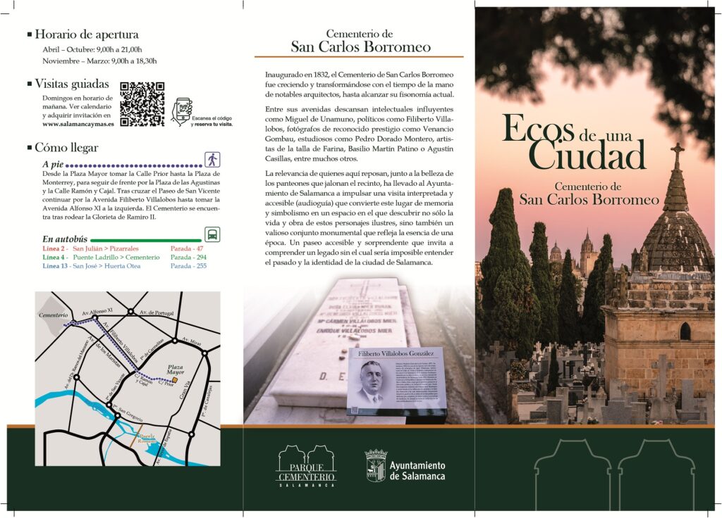 Junto a la señalización, Turismo de Salamanca pondrá en marcha visitas guiadas gratuitas durante octubre los domingos 5, 19 y 26, con dos pases a las 11:00 y 12:30 horas, grupos de hasta 25 personas y una hora de duración. Las reservas ya se pueden realizar a través del enlace https://salamancaymas.es/visita-guiada-al-cementerio-san-carlos-borromeo/. El alcalde recalca que las rutas se realizarán “con absoluto respeto” al recinto, a sus normas y a las personas que allí descansan, garantizando una experiencia serena y de calidad.