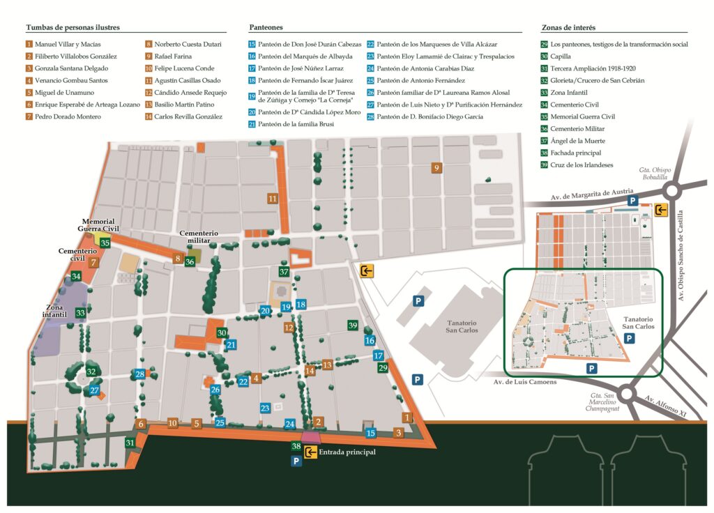El Alcalde de Salamanca ha subrayado que se trata de “un paso natural y, al mismo tiempo, una obligación moral” para una ciudad que atesora en su camposanto un compendio de memoria, arte y urbanismo. El proyecto, coordinado por las áreas de Salud Pública y Turismo, incluye un plano turístico específico del recinto con la localización de los principales hitos, entre los que destacan tumbas de personajes ilustres, panteones de gran valor artístico y otros lugares destacados como la capilla, el crucero de San Cebrián, la cruz de los Irlandeses y el llamado Ángel de la Muerte. Todos estos puntos han sido documentados con criterios históricos y patrimoniales para asegurar una visita didáctica y respetuosa.