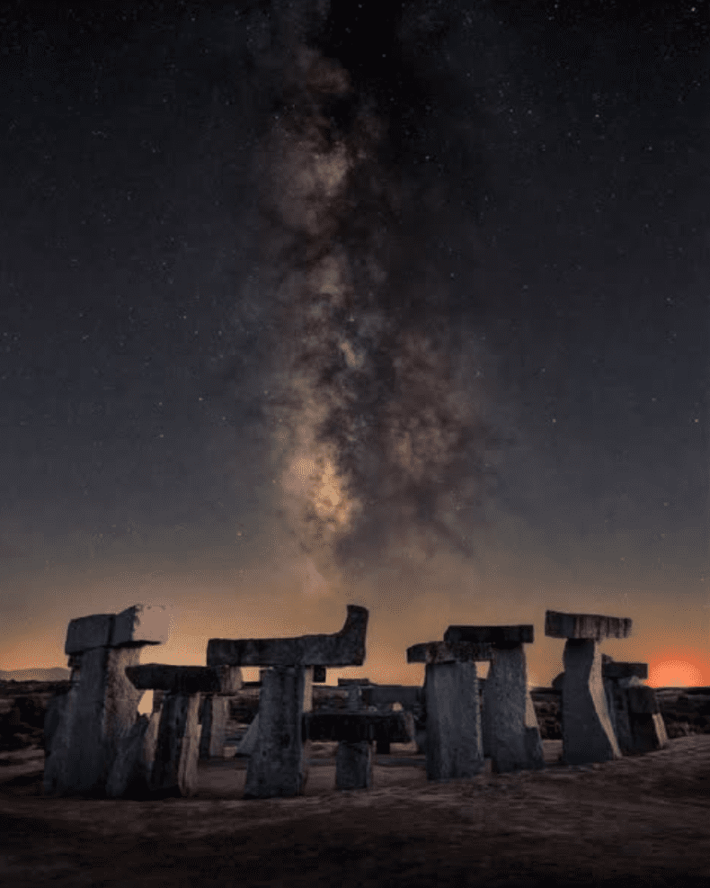 La fotografía de hoy es de Álex Millán. Imagen nocturna del Parque Temático del Granito en la localidad de Los Santos.