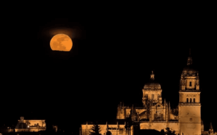 La fotografía de hoy es de Juan Antonio García. Imagen nocturna de la Catedral de Salamanca bajo la luna llena.