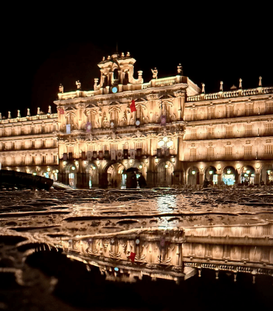 La fotografía de hoy es de Curro Blanco. Imagen nocturna desde la Plaza Mayor de Salamanca.