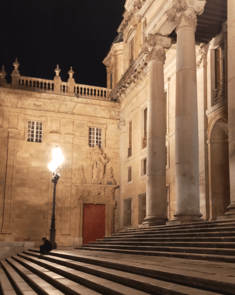 La fotografía de hoy es de la cuenta de Instagram de @engonsan. Imagen nocturna desde las escaleras del Palacio de Anaya en Salamanca.