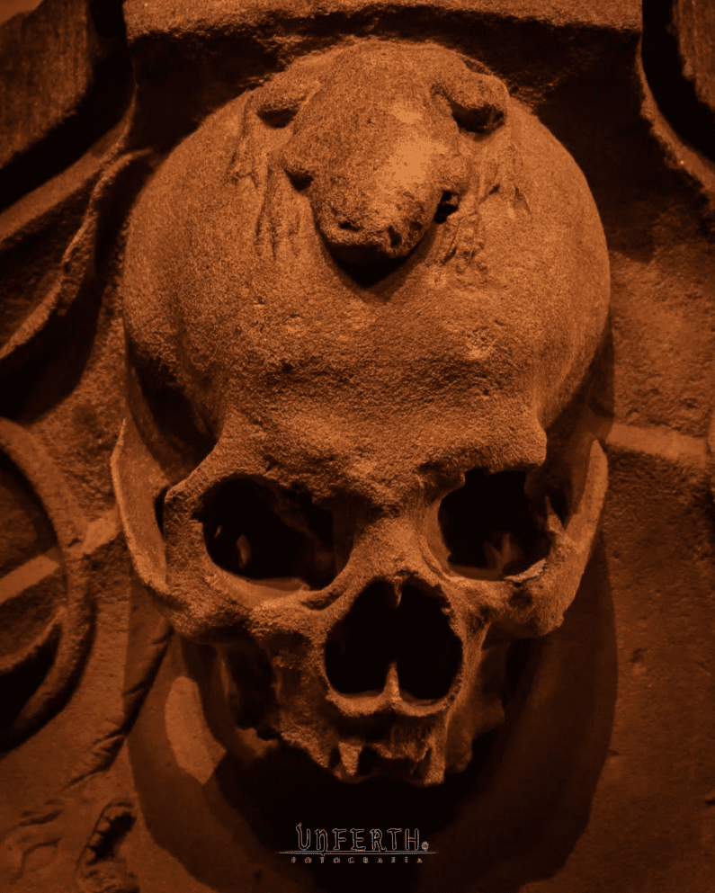 La fotografía de hoy es de Fernando Unferth. Imagen nocturna de la rana (o sapo) sobre una de las calaveras de la fachada de la Universidad de Salamanca.