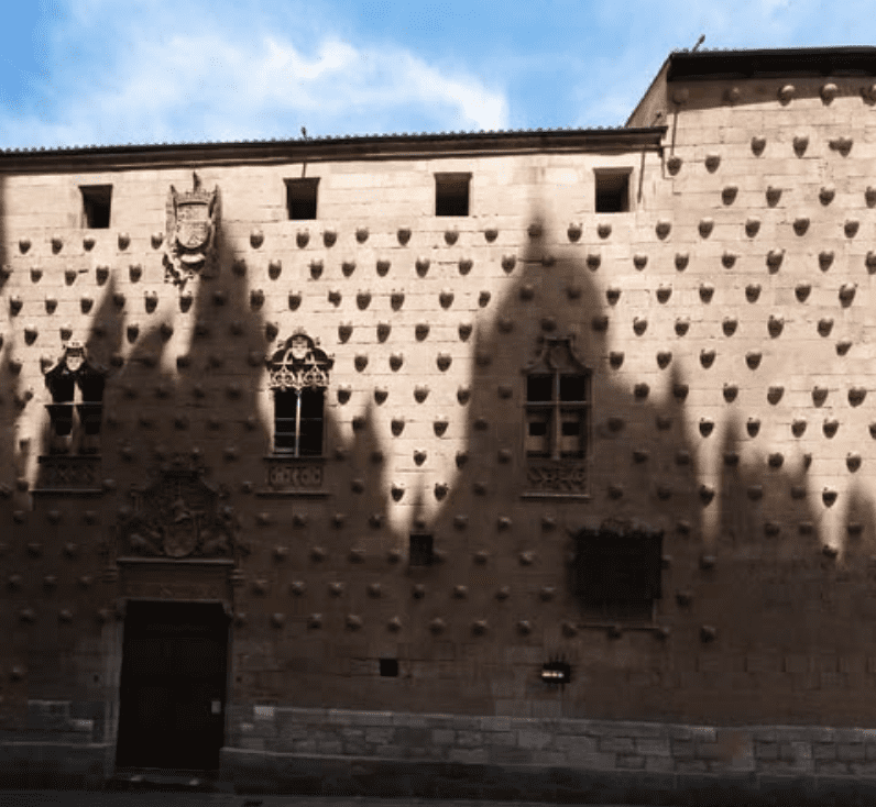 La fotografía de hoy es de Martín Martín. Imagen de la Casa de las Conchas de Salamanca con la sombra de la Clerecía proyectada en su fachada.