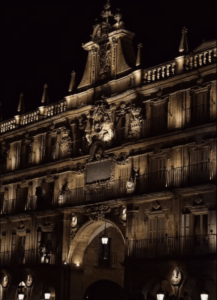 La fotografía de hoy es de Teresa Lucas. Imagen nocturna del pabellón de reyes de la Plaza Mayor de Salamanca.