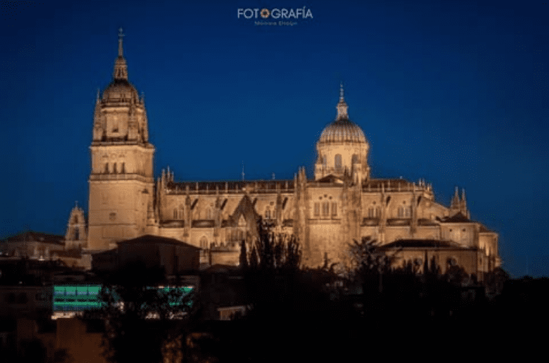 La fotografía de hoy es de Mónica Diogo. Imagen nocturna de la Catedral de Salamanca y la Casa Lis.