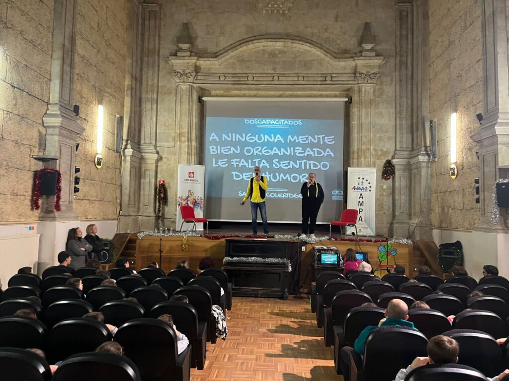 La pasada semana, en el Colegio Salesiano María Auxiliadora de Salamanca, los alumnos desde 5º de Primaria hasta 4º de ESO han asistido a un show de humor y motivación representado por José de Luna “Josete”, conocido como Juanma en la película Campeones, y Edu Luky, actor, cómico y monologuista con más de 28 años en la profesión.