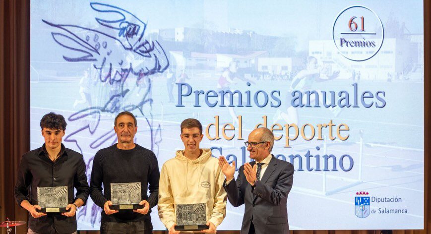 Por su parte, las placas institucionales han sido para la Delegación Salmantina de Atletismo, con la Placa Diputación de Salamanca por su labor de promoción y difusión del atletismo en la provincia; los atletas escolares de escalada David Garrido y Daniela Vaquero con la Placa Junta de Castilla y León por sus resultados obtenidos esta pasada temporada; Club Deportivo Escuela Santiago Uno con la placa del Ayuntamiento de la capital; y los técnicos deportivos municipales Antonio Pérez, de Peñaranda; Melchor Herráez de Guijuelo y Miguel Matías Rubio de Ciudad Rodrigo, con el trofeo Carlos Gil Pérez de la Asociación Salmantina de la Prensa Deportiva, por su gestión y apoyo al deporte en sus municipios.