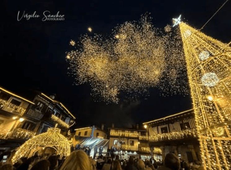 La fotografía de hoy, día de los Santos Niños Inocentes, es de Virgilio Sánchez. Imagen nocturna desde la Plaza Mayor de La Alberca esta Navidad.
