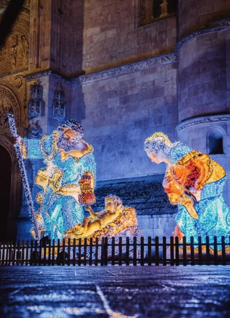 La fotografía de hoy, festividad de Santa María, Madre de Dios, y primer día del año 2026, es de Turismo de Salamanca. Imagen del Nacimiento colocado esta Navidad en el atrio de la Catedral de Salamanca.