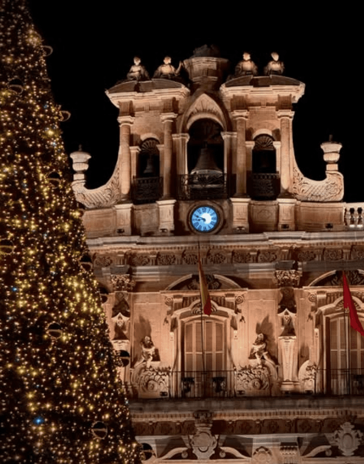 La fotografía de hoy es de Curro Blanco. Imagen nocturna desde la Plaza Mayor de Salamanca durante esta Navidad.