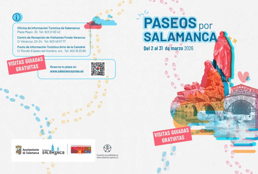 Nueva edición del programa ‘Paseos por Salamanca’, las visitas guiadas gratuitas en las que se acerca a ciudadanos y visitantes la riqueza histórica, monumental y humana de la ciudad a través de recorridos especializados con los que poner en valor celebraciones, lugares y personajes clave de la historia salmantina. Hasta el 31 de marzo se ofrecen tres recorridos temáticos gratuitos centrados en la Escuela de Salamanca, la riada de San Policarpo y el Año Jubilar de San Juan de la Cruz.