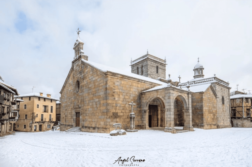 La fotografía de hoy es de Ángel Serrano. Imagen de este invierno de la iglesia parroquial de La Alberca.