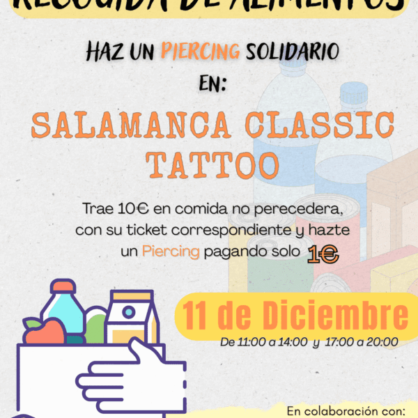 Salamanca Classic Tattoo impulsa una recogida solidaria de alimentos con piercings a 1 euro para apoyar al Banco de Alimentos9 Dic a las 19:51